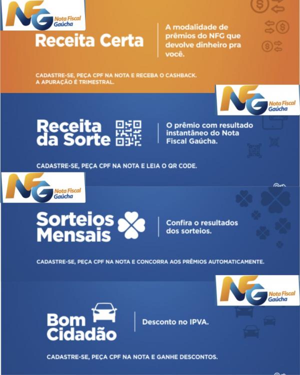 O Programa Nota Fiscal Gaúcha (NFG), promovido pelo Governo do Estado, é uma iniciativa que incentiva os cidadãos a solicitarem a inclusão do CPF nas notas fiscais no