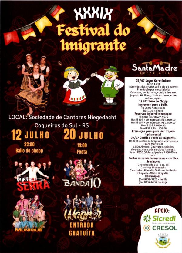 A tradição e a cultura do nosso povo serão celebradas em grande estilo no XXXIX Festival do Imigrante, promovido pela Sociedade de Cantores Niegedacht, com o apoio da